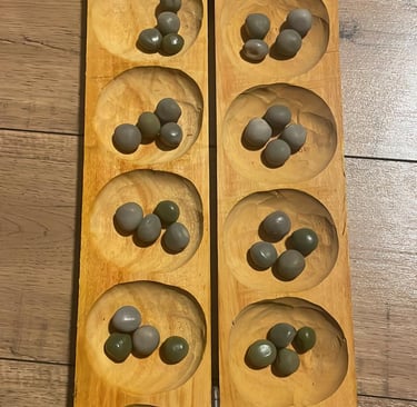 Zion Handcarved Solid Wood Ayo Game Board and Seeds. (African Game)